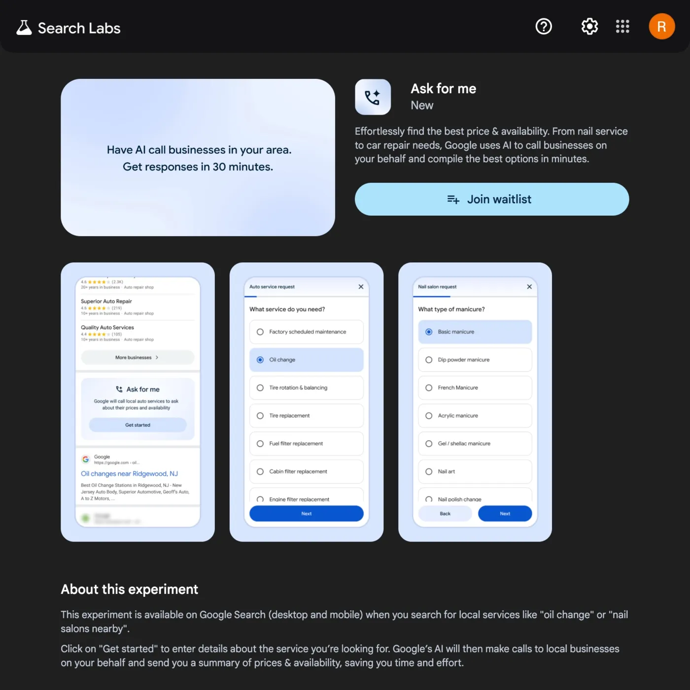 There are several other AI services in development intended to help users find the info they need more efficiently. For example, Google is currently experimenting with an “Ask for me” service, where its AI calls businesses for customers to learn about availability, pricing, and more:
